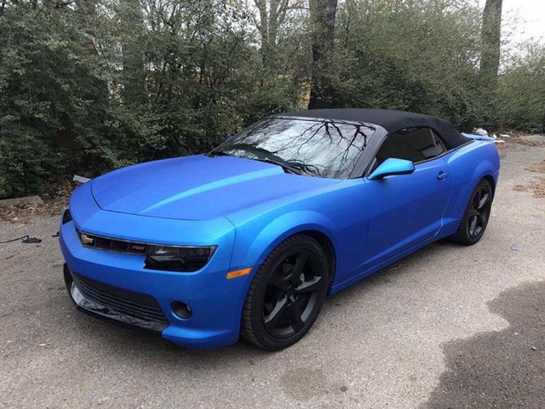 Chevrolet Camaro wrapped in Satin Blue Aluminum vinyl